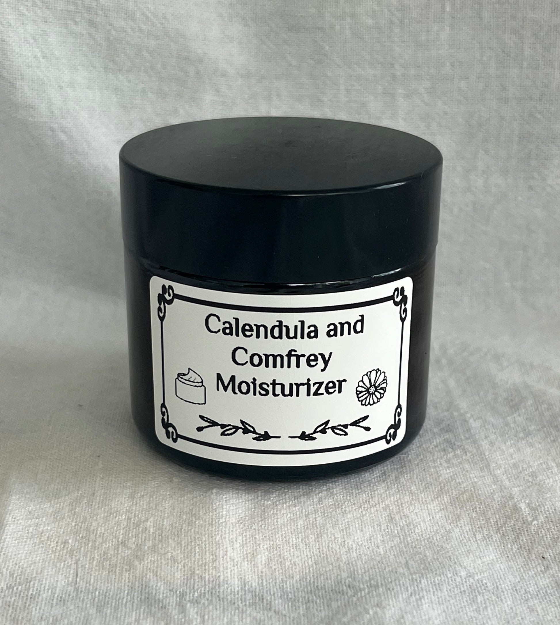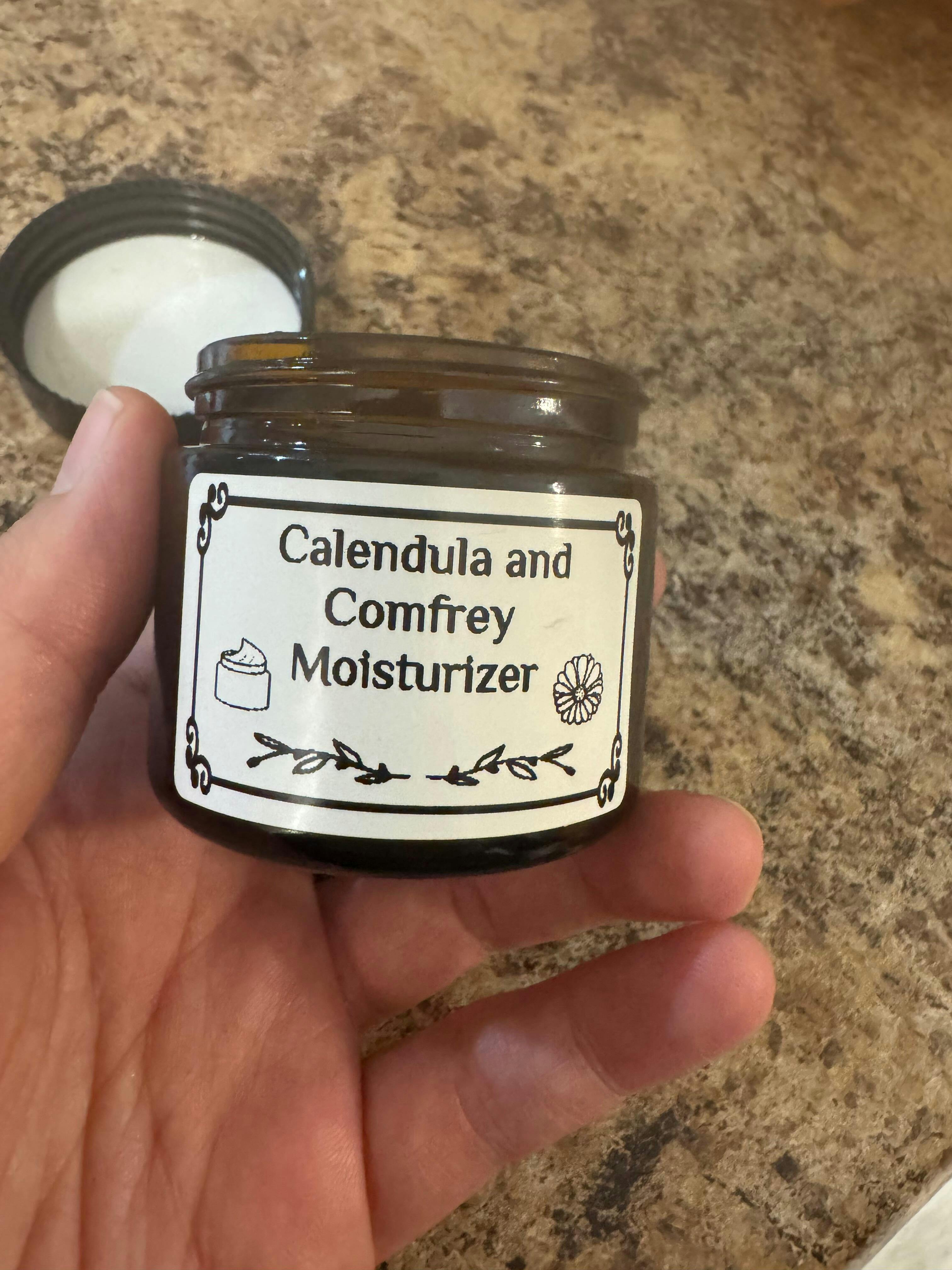 A nourishing fusion of calendula, comfrey, frankincense, myrrh, sandalwood, and helichrysum, designed to deeply hydrate, calm, and may renew your skin. Great for dry patches and pretty much all over.