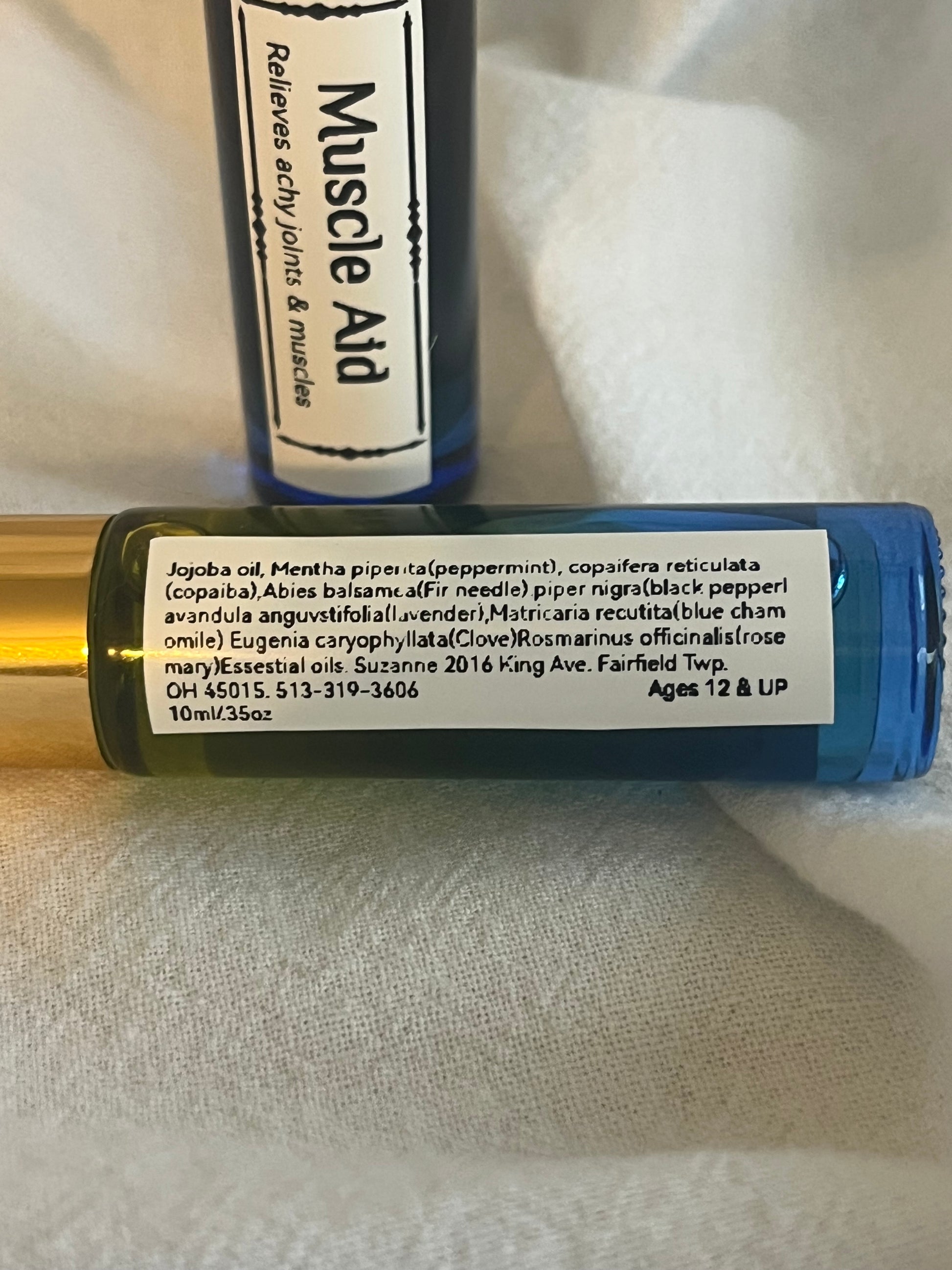 Ingredients: Jojoba oil. Cleavers(Galium aparine), peppermint(Mentha x piperita), copaiba(Copaifera reticulata), cedar leaf(Thuja occidentalis), black pepper(Piper nigra), lavender(Lavandula angustifolia), German chamomile(Matricaria recutita), and rosemary(Rosmarinus officinalis) essential oils.